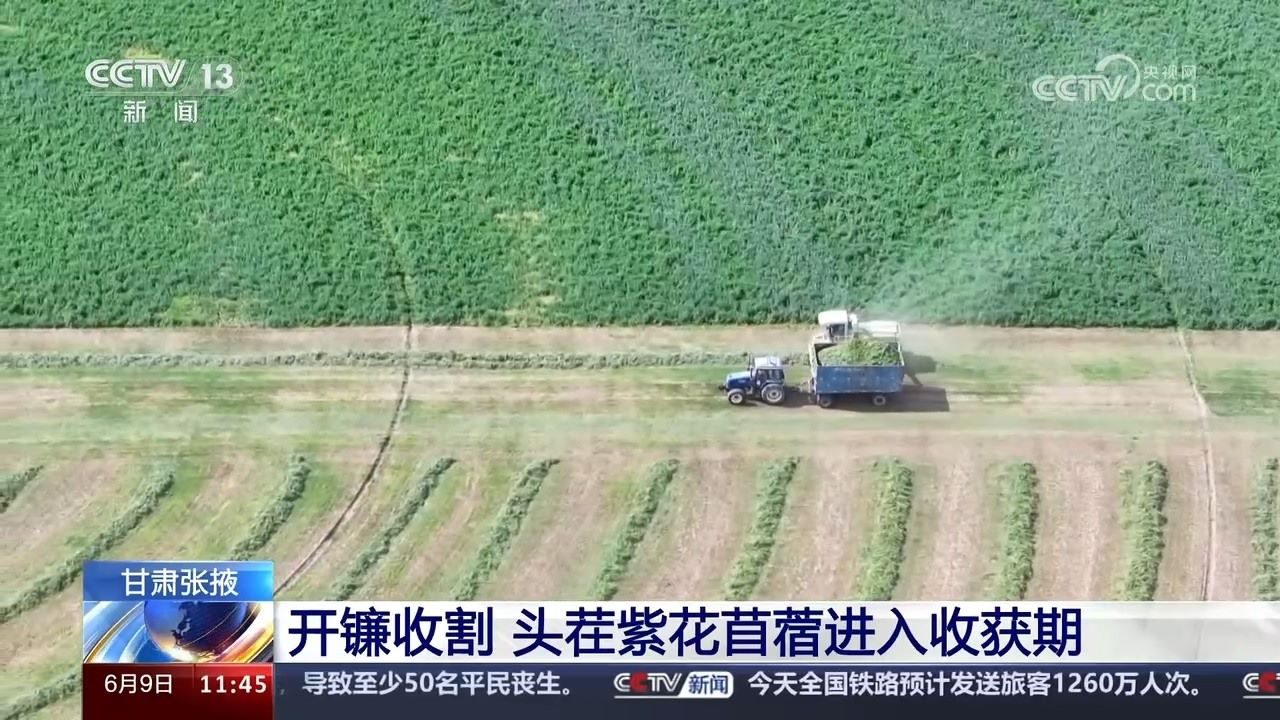 甘肅張掖:開鐮收割 頭茬紫花苜蓿進(jìn)入收獲期