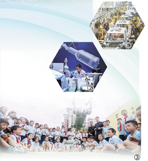 圖①:湖北武漢經(jīng)開區(qū)的嵐圖汽車電動化焊裝車間,機器人正在流水線上作業(yè)。 新華社記者 肖藝九攝 圖②:中國科學(xué)院空間光學(xué)系統(tǒng)在軌制造與集成重點實驗室的科研人員在進行科研工作。 新華社記者 許 暢攝 圖③:河北邯鄲市復(fù)興區(qū)前進小學(xué)的學(xué)生們在觀看機器狗表演。聶長青攝(人民視覺)