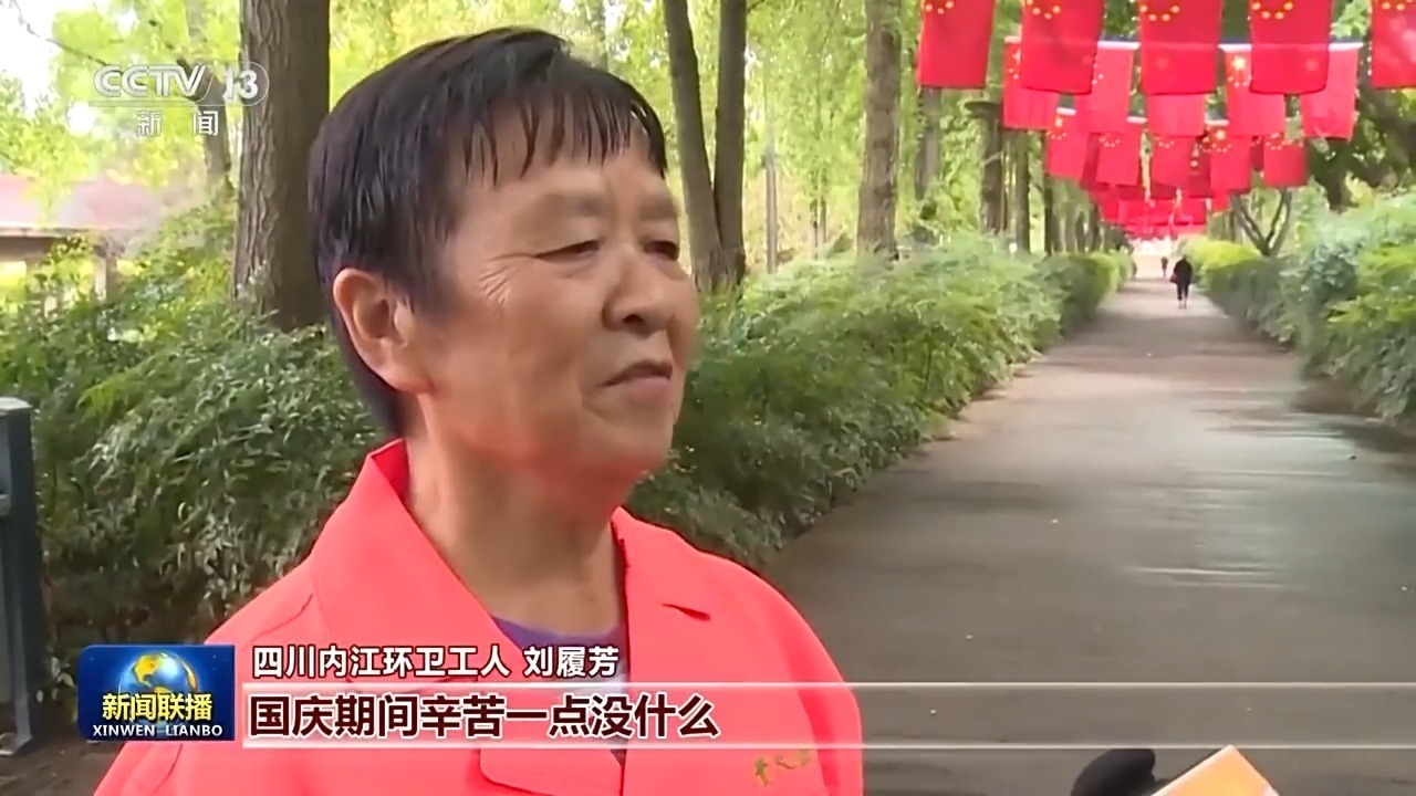 四川內(nèi)江環(huán)衛(wèi)工人 劉履芳:國(guó)慶期間辛苦一點(diǎn)沒什么,希望市民過一個(gè)開心、整潔的國(guó)慶假期。