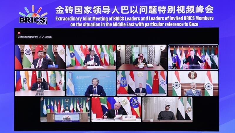 去年11月,金磚國(guó)家領(lǐng)導(dǎo)人巴以問題特別視頻峰會(huì)召開,與會(huì)領(lǐng)導(dǎo)人就應(yīng)對(duì)巴以新一輪沖突造成的挑戰(zhàn)并持續(xù)推動(dòng)巴以問題公正持久解決展開交流,協(xié)調(diào)立場(chǎng),發(fā)出呼吁,達(dá)成共識(shí),并采取積極行動(dòng),發(fā)出清晰的正義之聲、和平之聲。