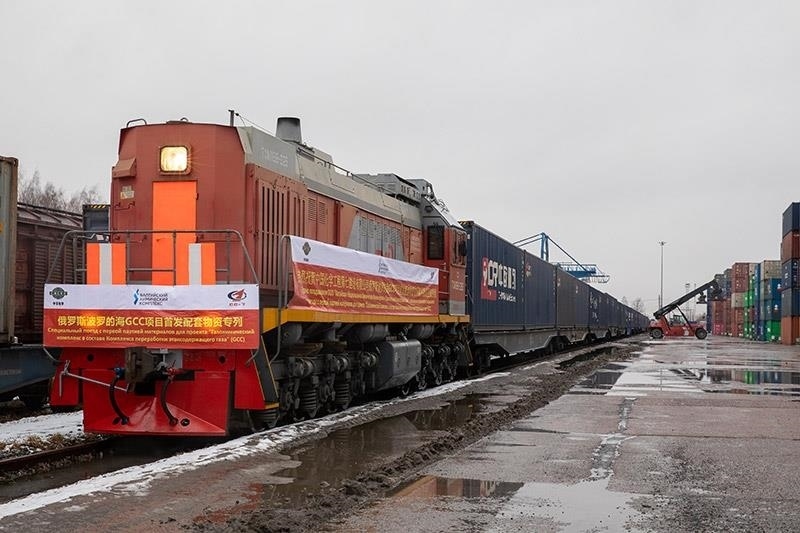 △2021年3月,由中國(guó)成都首發(fā)至俄羅斯圣彼得堡市的中歐班列抵達(dá)圣彼得堡舒沙雷火車站。