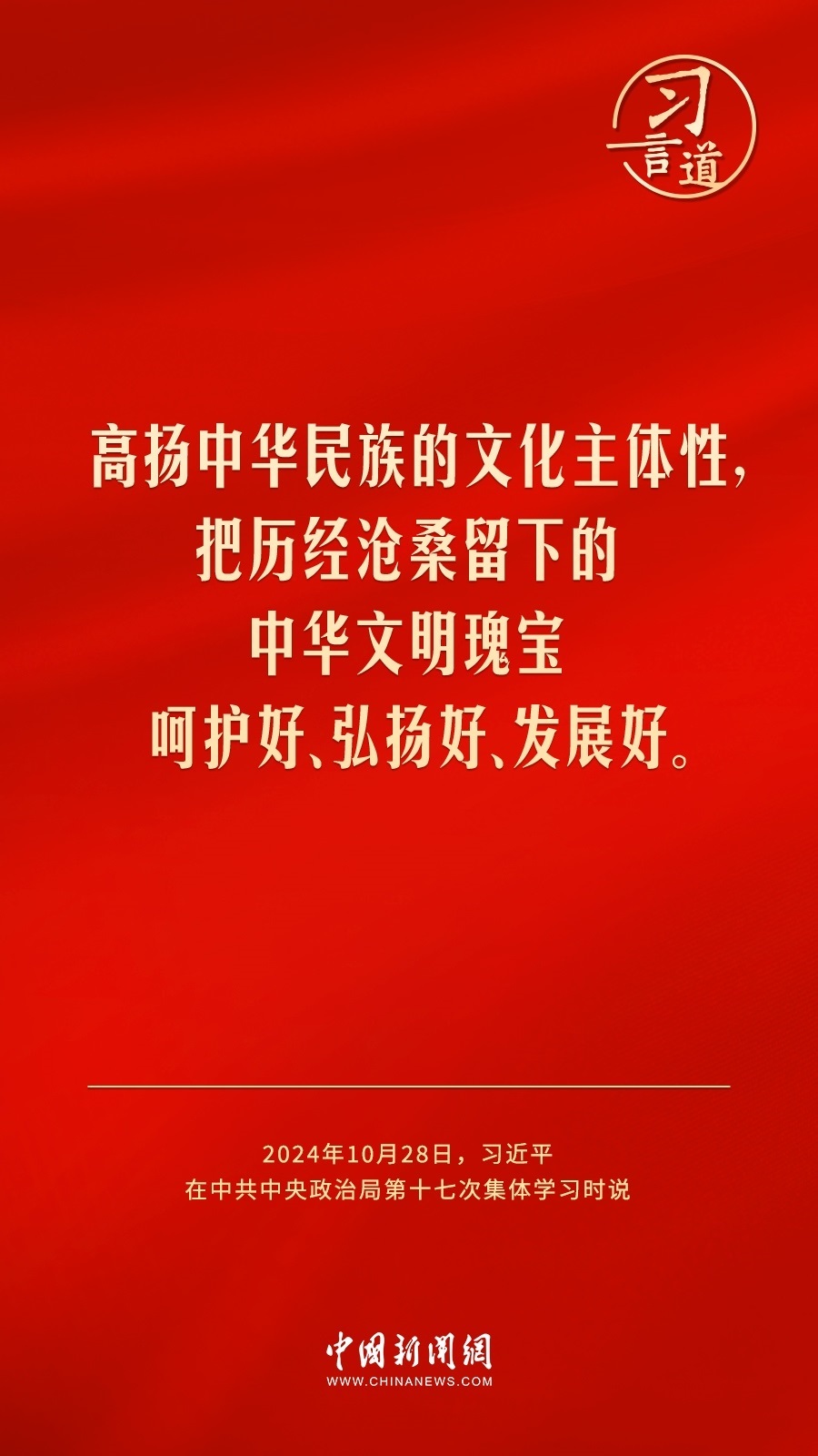 中共中央政治局10月28日下午就建設文化強國進行第十七次集體學習。中共中央總書記習近平在主持學習時強調——
