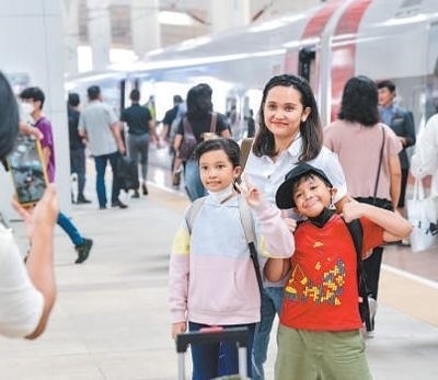 硬聯通雅萬高鐵是我國在境外完成全過程勘察設計建設的首個高鐵項目,于去年10月17日正式開通運營,是中印尼共建“一帶一路”合作的典范。圖為乘客在和雅萬高鐵動車組合影留念。新華社記者 徐 欽攝