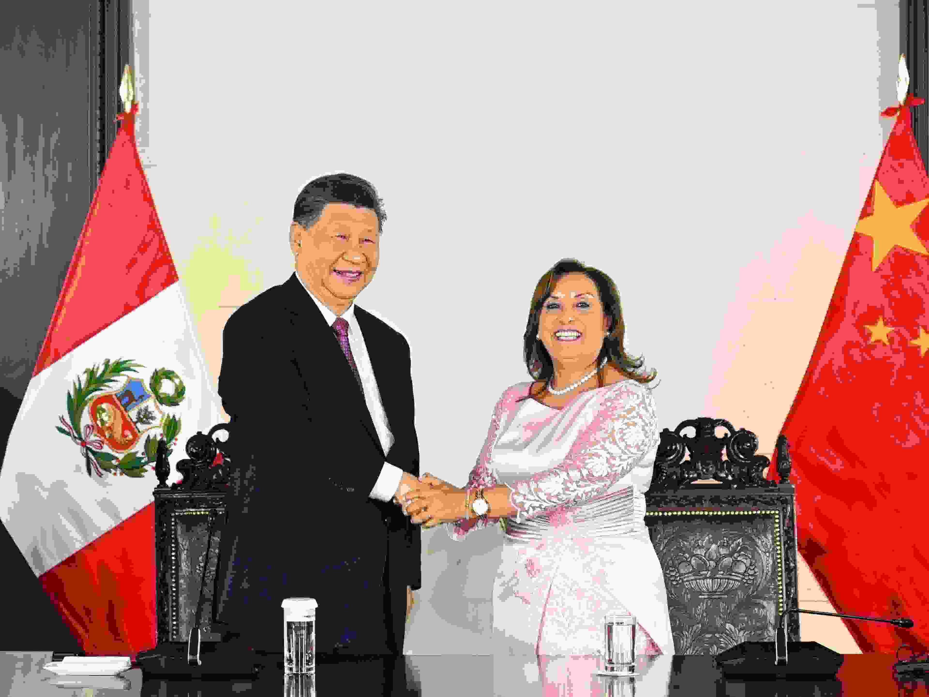 當(dāng)?shù)貢r間2024年11月14日晚,國家主席習(xí)近平同秘魯總統(tǒng)博魯阿爾特在利馬總統(tǒng)府以視頻方式共同出席錢凱港開港儀式。新華社記者 謝環(huán)馳 攝