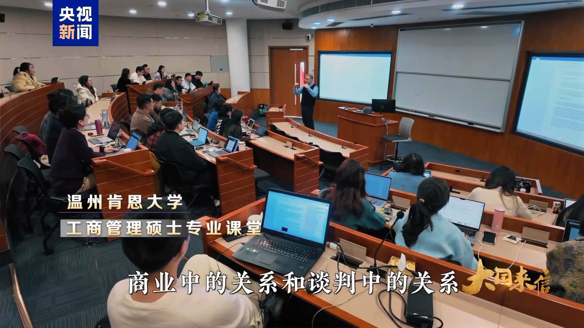 溫州肯恩大學(xué)商務(wù)與公共關(guān)系學(xué)院副教授 羅布·馬杰里森:中美貿(mào)易是我研究的領(lǐng)域,兩國(guó)之間商業(yè)往來(lái)如此頻繁,經(jīng)濟(jì)如此緊密地交織在一起。當(dāng)人們想做生意時(shí),他們必須互相理解,他們必須尊重對(duì)方的文化。所以當(dāng)我們的學(xué)生去美國(guó)肯恩大學(xué)交流,當(dāng)美國(guó)學(xué)生來(lái)到這里,這段經(jīng)歷中最有價(jià)值的就是學(xué)習(xí)如何為了共同的目標(biāo)而溝通合作。