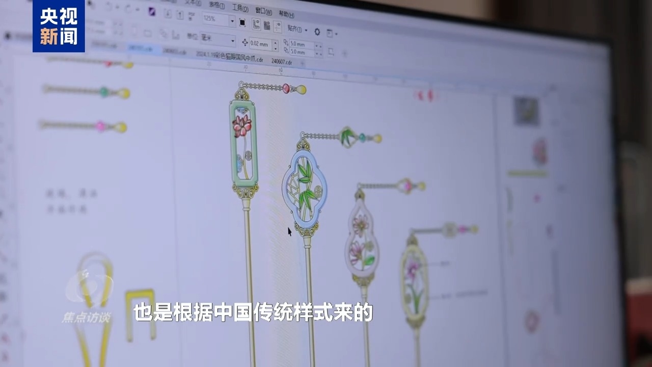 義烏某飾品公司產(chǎn)品設計師 周亮:梅蘭竹菊有傳統(tǒng)的一些寓意,然后這些圖案的外形,也是根據(jù)中國傳統(tǒng)樣式來的。材料方面,我主要是想體現(xiàn)中國的那種翡翠的感覺。