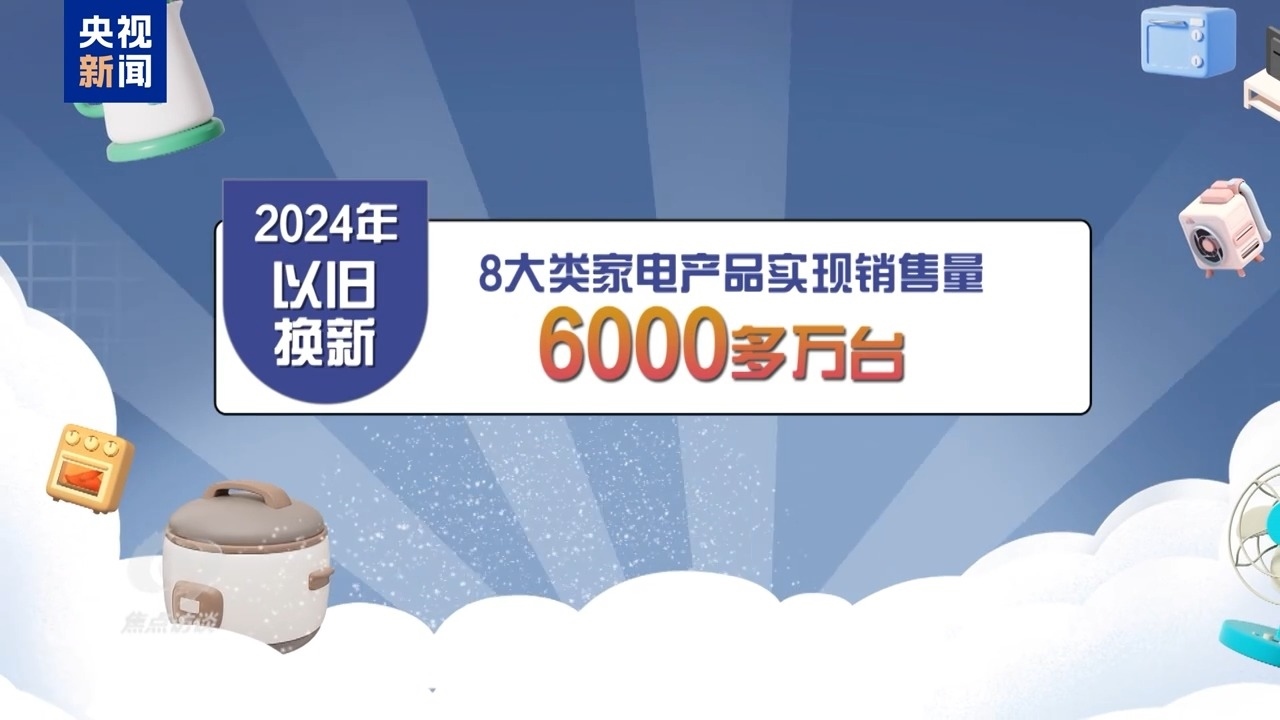 好政策帶來了好成效。以家電市場為例,2024年,中央加力支持以舊換新8大類家電產(chǎn)品實現(xiàn)銷售量6000多萬臺,直接拉動消費超2600億元。