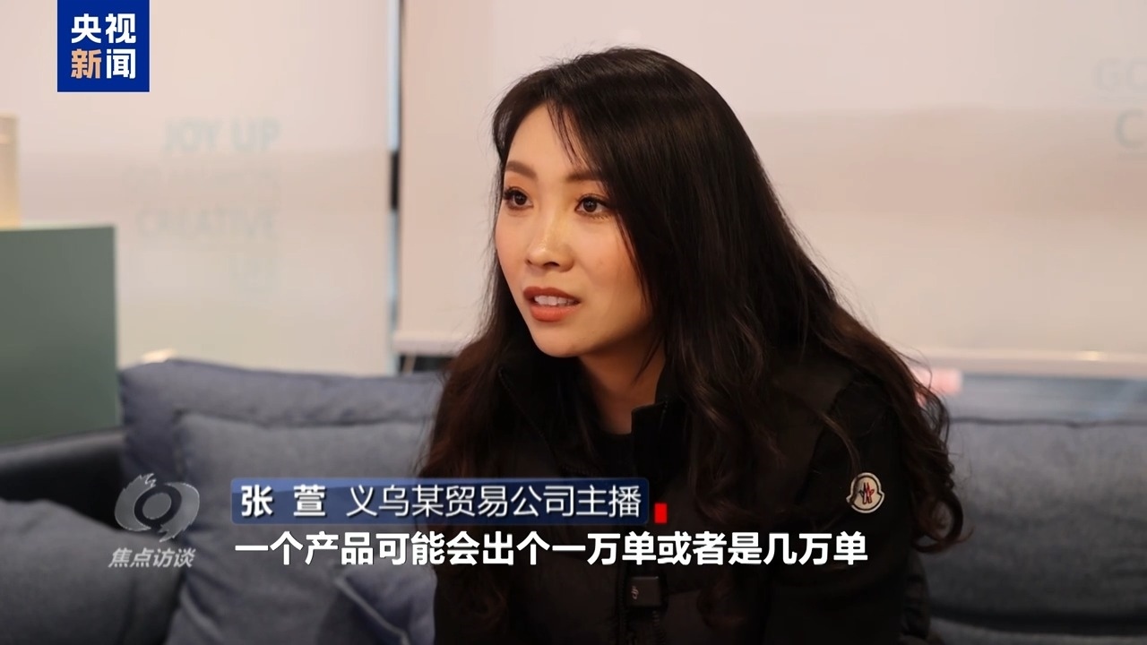 義烏某貿(mào)易公司主播 張萱:一個產(chǎn)品可能會出個一萬單或者是幾萬單,這個時候就感覺到比較震撼。原來消費者他們的消費能力會這么強,所以真的是非常感恩這個時代,感恩所有的消費者。