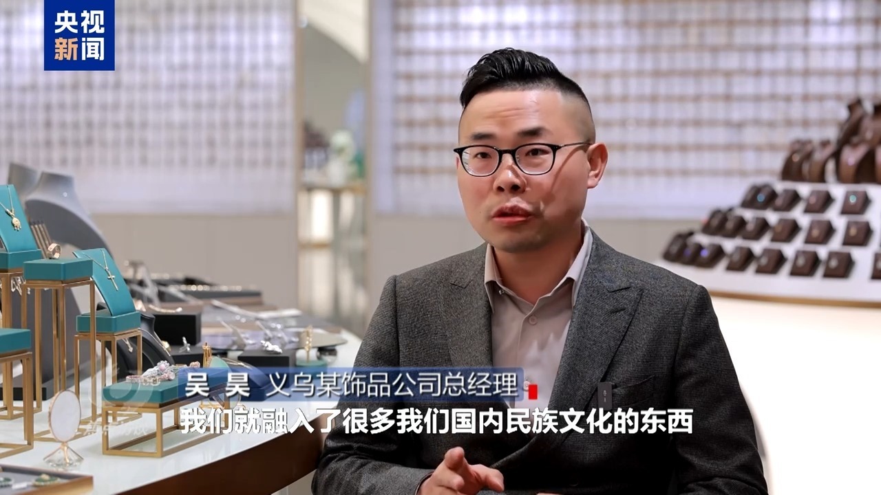 義烏某飾品公司總經(jīng)理 吳昊:在這一塊,融入了很多我們國內(nèi)民族文化的東西,重新組合去創(chuàng)造,他們都會喜歡這個東西。其實歸根結底,還是我們通過這么多年的發(fā)展,我們國家人民的日子越過越好的時候,這個民族文化的自信是從國人的骨子里面迸發(fā)出一種自信的體現(xiàn)。