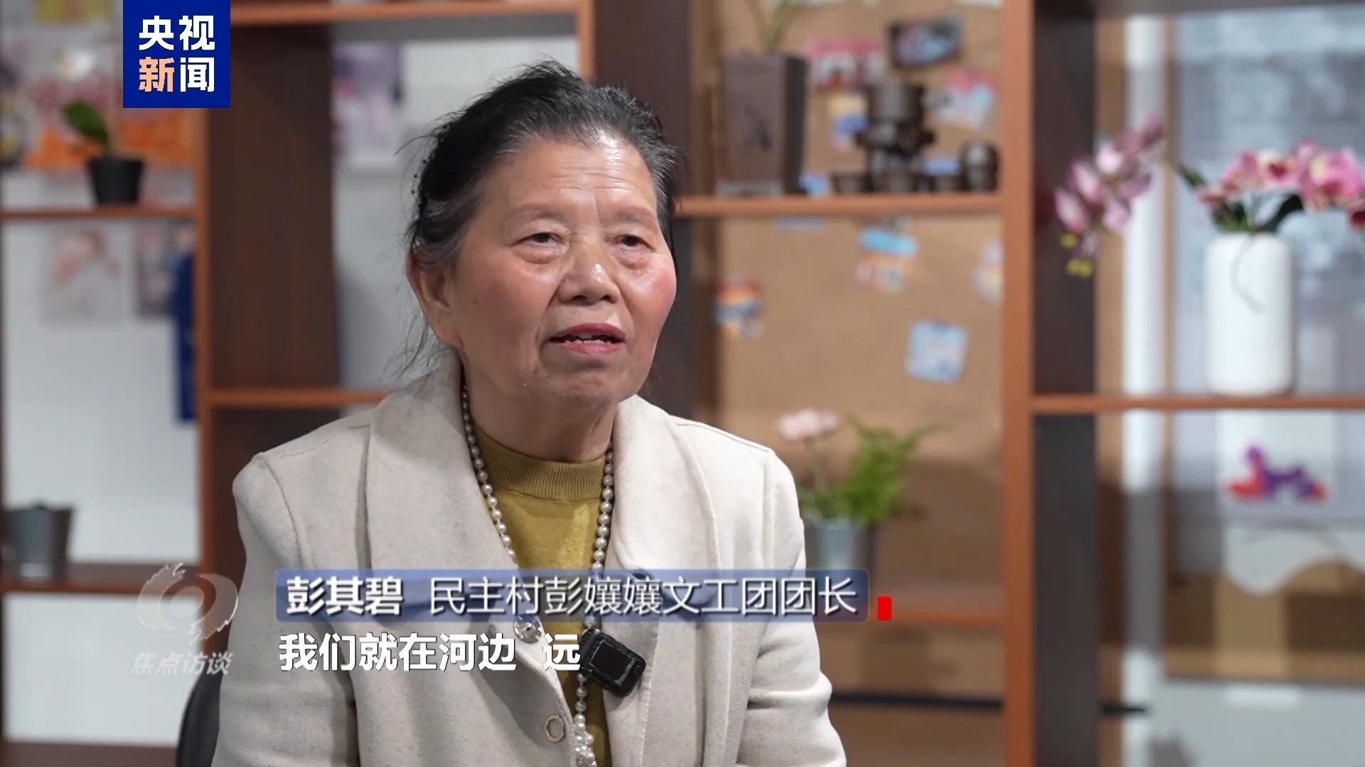 民主村彭孃孃文工團團長 彭其碧:民主村沒有改造之前我們就在河邊排練,距離遠。