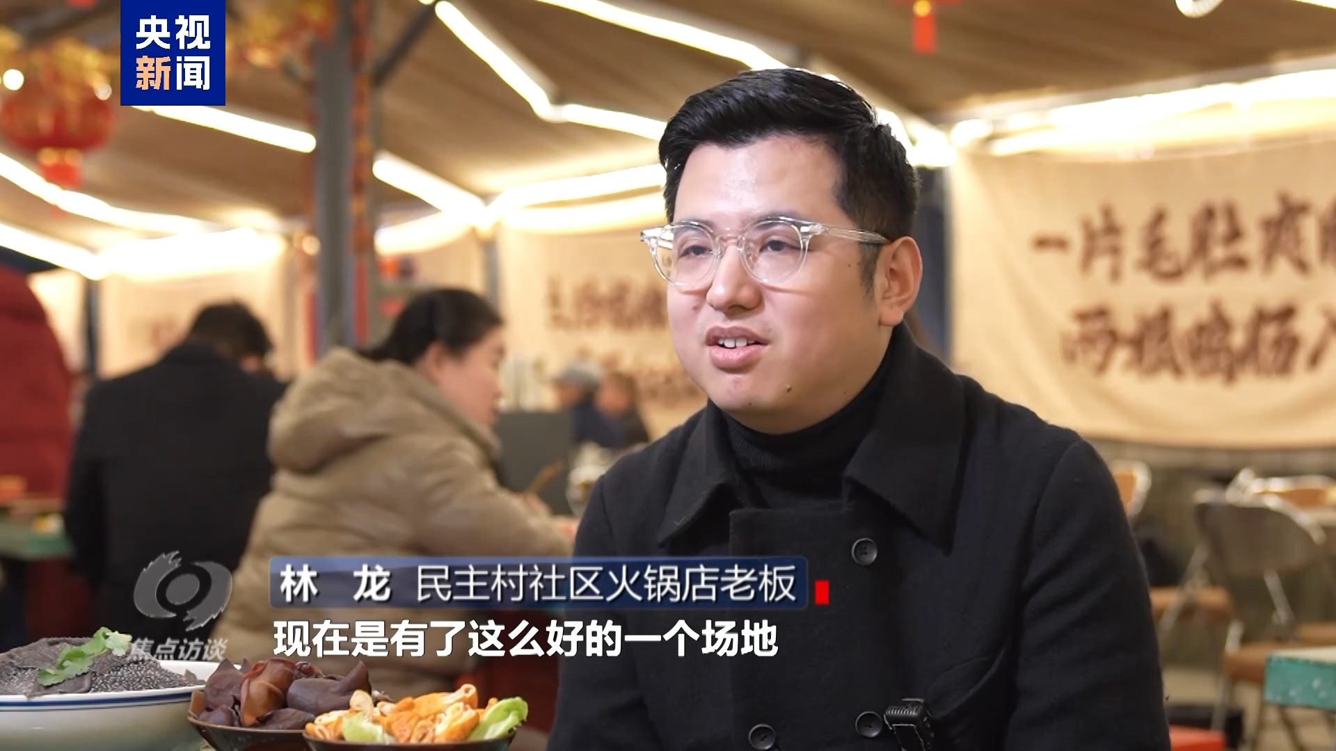 民主村社區(qū)火鍋店老板 林龍:希望民主村人氣越來越旺,我們火鍋店生意越來越好,大家都多賺票子!