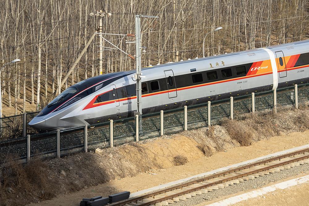 △2025年2月15日,中國鐵道科學院試驗中心環(huán)形試驗場,復興號CR450型電力動車組進場展開測試。