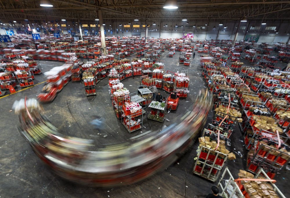 2023年1月31日,臺車在昆明國際花卉拍賣交易中心運輸鮮花。
