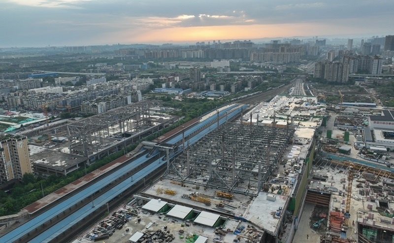 成都站位于四川省成都市,是新中國第一條自主建設(shè)的鐵路——成渝鐵路的起始站。為滿足成渝中線高鐵建設(shè)、市域鐵路公交化改造建設(shè)等需要,車站進(jìn)行了拆除擴建。車站建設(shè)采取“分步施工、南北交替”方案,將施工區(qū)域劃分為南北兩個作業(yè)面,實現(xiàn)了鐵路正常運輸與工程建設(shè)同步推進(jìn),完成銜接成渝、達(dá)成、寶成等多條鐵路線路的撥接與改造。