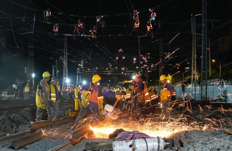 記者從中國鐵路成都局集團(tuán)有限公司成都建設(shè)指揮部獲悉,6月20日6時,經(jīng)近2000名作業(yè)人員520分鐘的連續(xù)奮戰(zhàn),成渝中線高鐵成都站南北站場交替施工圓滿完成,標(biāo)志著成渝中線高鐵成都站改建工程整體過半,為項目按期開通奠定了堅實基礎(chǔ)。這次交替施工是鐵路營業(yè)線Ⅰ級施工,由中鐵八局、中鐵電氣化局、成都工務(wù)段、成都電務(wù)段、成都供電段等10余家單位相互配合完成。