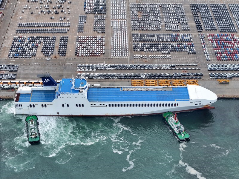 連日來,在山東港口煙臺(tái)港,大批出口車輛集結(jié)待發(fā),汽車運(yùn)輸船穿梭往來,一派繁忙景象。今年1—5月,煙臺(tái)港完成商品車運(yùn)量29.6萬輛。目前,煙臺(tái)港已實(shí)現(xiàn)全球主要商品車碼頭全覆蓋、全聯(lián)通,形成“以航線帶貨源、以貨源促航線”的良性循環(huán)。