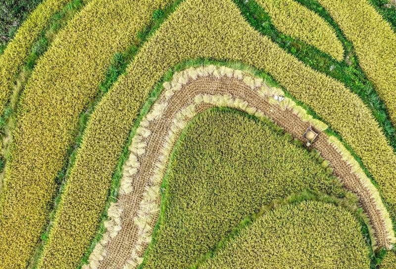 這是9月18日拍攝的重慶市黔江區(qū)五里鎮(zhèn)梯田景色(無(wú)人機(jī)照片)。