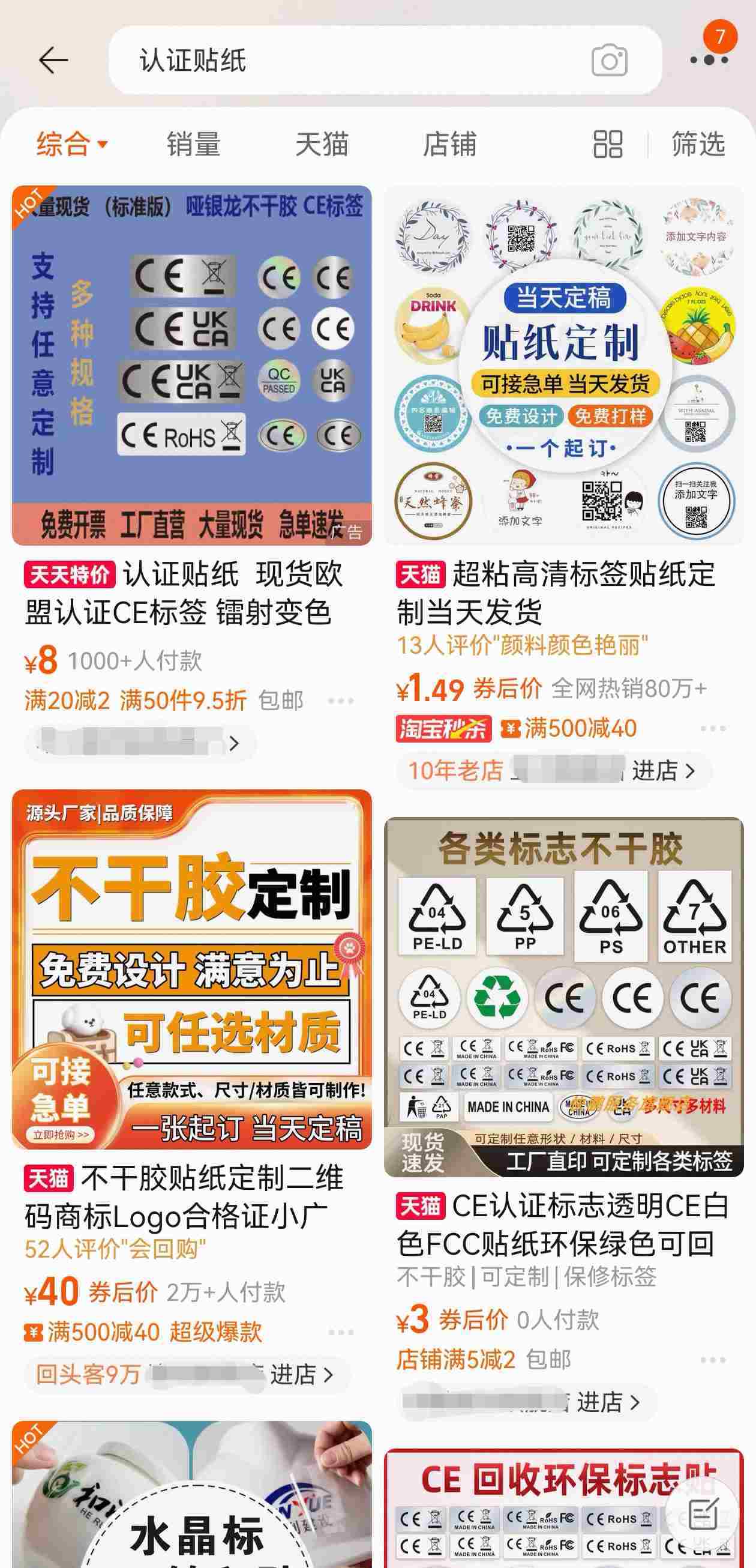 7月1日,記者在多個(gè)電商平臺(tái)發(fā)現(xiàn),雖然已無法在平臺(tái)搜索到“3C貼紙”相關(guān)商品,但仍存在大量“定制貼紙”“定制標(biāo)識(shí)”類商家。