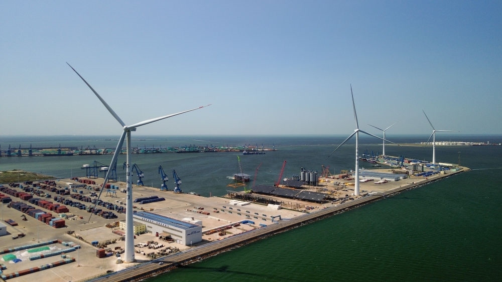 “4臺風力發(fā)電機一年可發(fā)電約7000萬千瓦時,足以覆蓋碼頭設(shè)備及停靠船舶的用電需求,冗余電量還能上網(wǎng)銷售?!鄙綎|省港口集團濰坊港有限公司黨支部書記、總經(jīng)理孫超說,濰坊港已形成風、光、氫“多能互補”的用能結(jié)構(gòu),每年可節(jié)省標煤2.1萬噸,減少二氧化碳排放5.7萬噸。