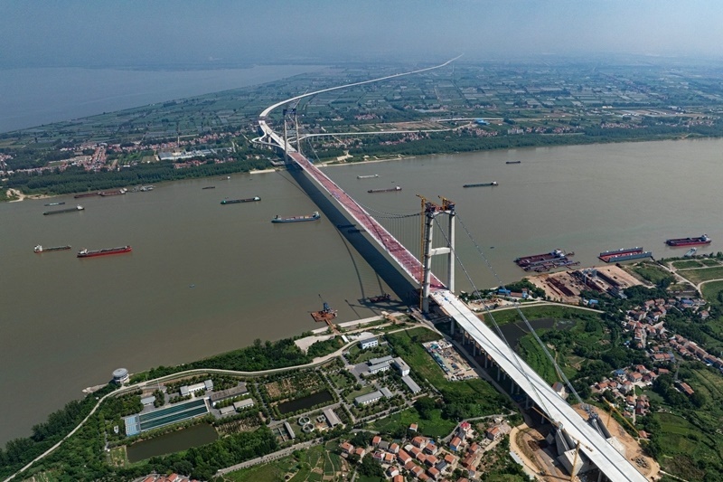 7月26日拍攝的合龍后的雙柳長(zhǎng)江大橋(無(wú)人機(jī)照片)。