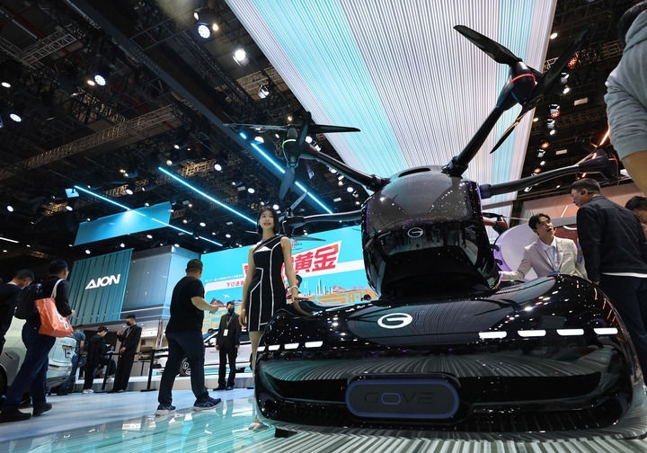 這是在第二十一屆上海國(guó)際汽車(chē)工業(yè)展覽會(huì)上拍攝的廣汽傳祺品牌展出的一款飛行汽車(chē)(2025年4月25日攝)。新華社記者 方喆 攝