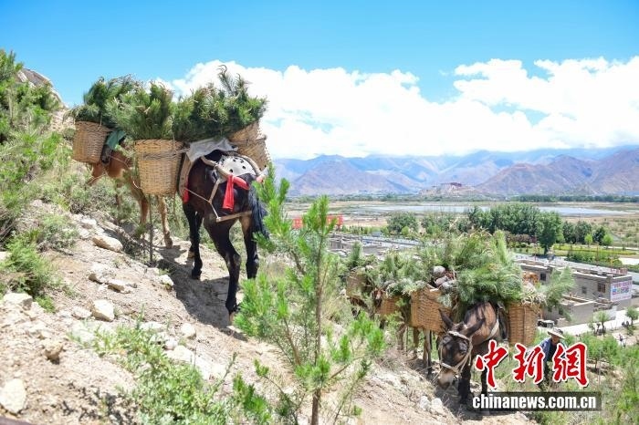 拉薩河流域造林隊(duì)員運(yùn)送樟子松樹苗。(資料圖) 中新社記者 貢嘎來(lái)松 攝
