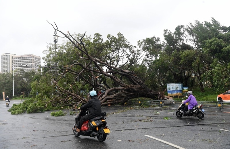 8月25日,在海南省三亞市吉陽(yáng)區(qū),市民從倒伏的樹木前經(jīng)過(guò)。