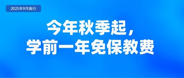 國務(wù)院辦公廳印發(fā)《關(guān)于逐步推行免費學(xué)前教育的意見》。從2025年秋季學(xué)期起,免除公辦幼兒園學(xué)前一年在園兒童保育教育費。對在教育部門批準(zhǔn)設(shè)立的民辦幼兒園就讀的適齡兒童,參照當(dāng)?shù)赝愋凸k幼兒園免除水平,相應(yīng)減免保育教育費。財政部、教育部將統(tǒng)籌考慮學(xué)齡人口變化、財力狀況等因素,研究適時完善免費學(xué)前教育政策。西藏,四川、云南、甘肅、青海四省涉藏州縣,新疆喀什、和田、阿克蘇、克孜勒蘇柯爾克孜四地州等地區(qū)在園兒童繼續(xù)執(zhí)行現(xiàn)行政策。