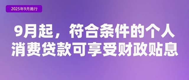 財政部、中國人民銀行、金融監(jiān)管總局印發(fā)《個人消費貸款財政貼息政策實施方案》,2025年9月1日至2026年8月31日期間,居民個人使用貸款經(jīng)辦機構(gòu)發(fā)放的個人消費貸款(不含信用卡業(yè)務(wù))中實際用于消費,且貸款經(jīng)辦機構(gòu)可通過貸款發(fā)放賬戶等識別借款人相關(guān)消費交易信息的部分,可按規(guī)定享受貼息政策。貼息范圍包括單筆5萬元以下消費,以及單筆5萬元及以上的家用汽車、養(yǎng)老生育、教育培訓(xùn)、文化旅游、家居家裝、電子產(chǎn)品、健康醫(yī)療等重點領(lǐng)域消費。對于單筆5萬元以上的消費,以5萬元消費額度為上限進行貼息。政策到期后,可視實施效果研究延長政策期限、擴大支持范圍。