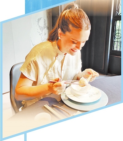 “我要蝦餃、糖沙翁……”瑞秋點了滿滿一桌的點心。不一會兒,精致的廣式點心端上桌,她拿起筷子,夾住一塊裹滿白色糖霜的黃色糖沙翁,咬了一口。“味道很像甜甜圈,香甜可口!”