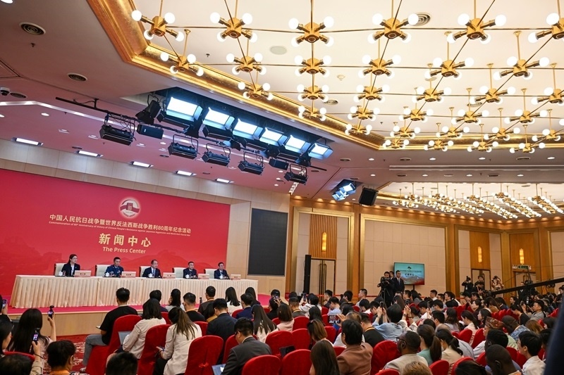 8月28日上午,中國(guó)人民抗日戰(zhàn)爭(zhēng)暨世界反法西斯戰(zhàn)爭(zhēng)勝利80周年紀(jì)念活動(dòng)新聞中心舉辦第一場(chǎng)記者招待會(huì),外交部部長(zhǎng)助理洪磊,文化和旅游部副部長(zhǎng)盧映川,閱兵領(lǐng)導(dǎo)小組辦公室副主任、中央軍委聯(lián)合參謀部作戰(zhàn)局少將副局長(zhǎng)吳澤棵,北京市委常委、常務(wù)副市長(zhǎng)夏林茂介紹紀(jì)念活動(dòng)有關(guān)籌備進(jìn)展,并回答記者提問(wèn)。