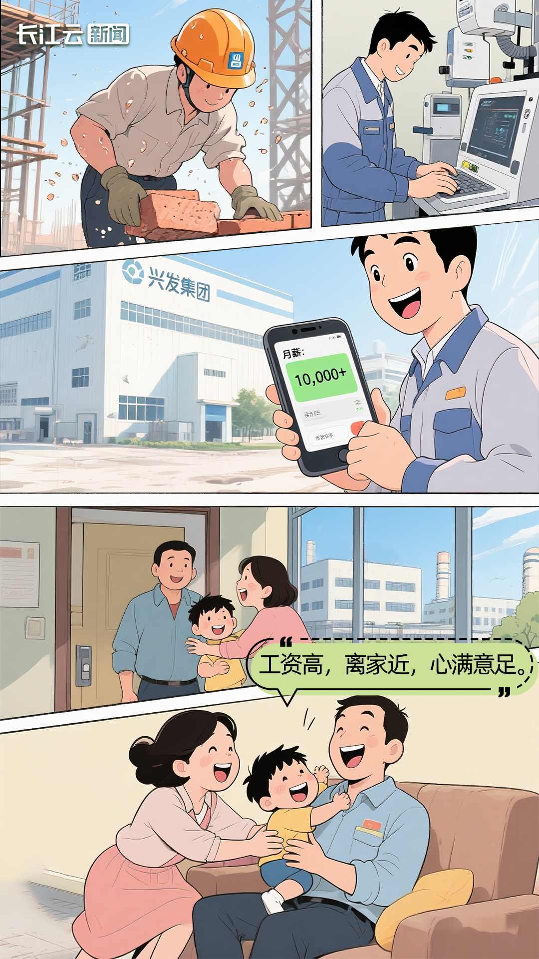 “現(xiàn)在月薪超1萬(wàn),離家又近,還能照顧家人,很滿足!”湖北興發(fā)集團(tuán)的員工肖晶高興地說(shuō)道。肖晶曾是農(nóng)民工,如今已成為集團(tuán)首席技師。