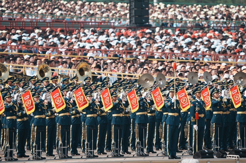 9月3日,紀(jì)念中國人民抗日戰(zhàn)爭暨世界反法西斯戰(zhàn)爭勝利80周年大會在北京隆重舉行。這是中國人民解放軍聯(lián)合軍樂團在演奏。
