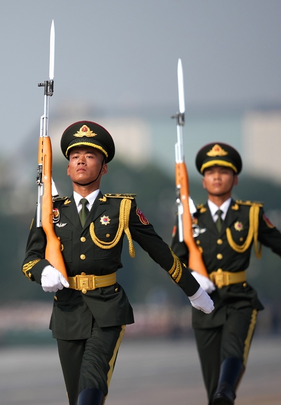9月3日,紀(jì)念中國人民抗日戰(zhàn)爭暨世界反法西斯戰(zhàn)爭勝利80周年大會在北京隆重舉行。這是標(biāo)兵就位。