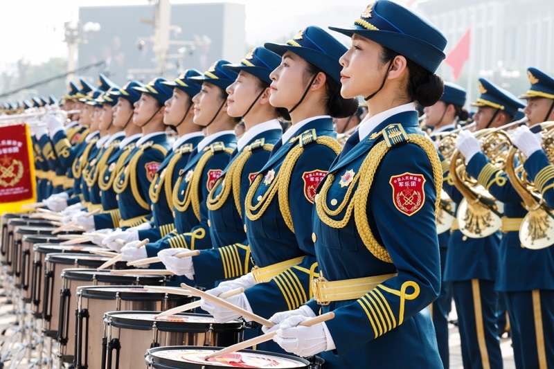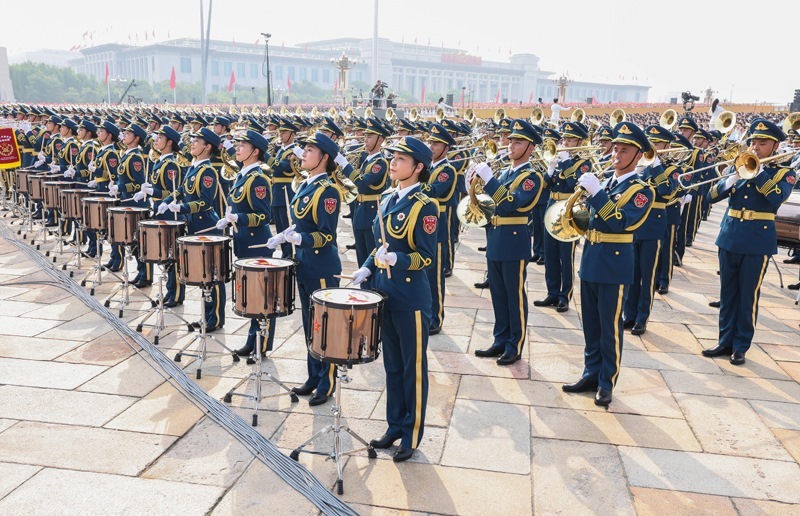 9月3日,紀(jì)念中國人民抗日戰(zhàn)爭(zhēng)暨世界反法西斯戰(zhàn)爭(zhēng)勝利80周年大會(huì)在北京天安門廣場(chǎng)隆重舉行。這是中國人民解放軍聯(lián)合軍樂團(tuán)在演奏。