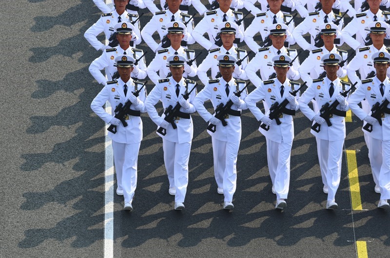 9月3日,紀(jì)念中國人民抗日戰(zhàn)爭暨世界反法西斯戰(zhàn)爭勝利80周年大會(huì)在北京隆重舉行。這是海軍方隊(duì)接受檢閱。