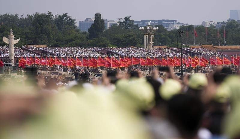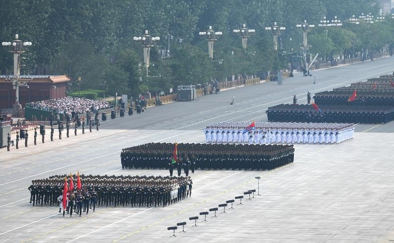 9月3日,紀(jì)念中國(guó)人民抗日戰(zhàn)爭(zhēng)暨世界反法西斯戰(zhàn)爭(zhēng)勝利80周年大會(huì)在北京隆重舉行。這是徒步方隊(duì)接受檢閱。