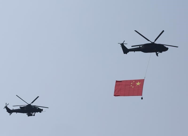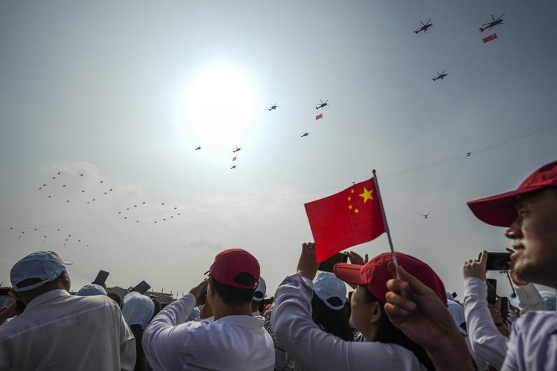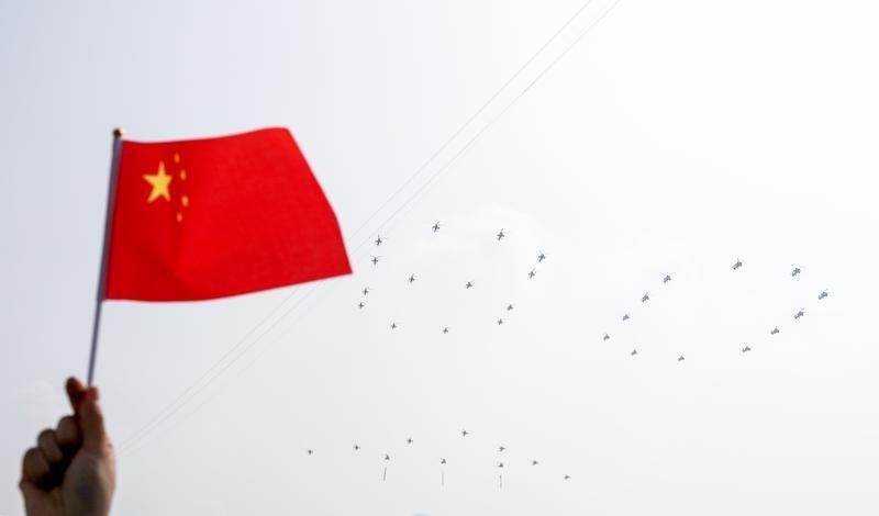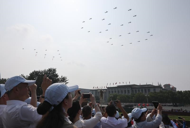 9月3日,紀(jì)念中國(guó)人民抗日戰(zhàn)爭(zhēng)暨世界反法西斯戰(zhàn)爭(zhēng)勝利80周年大會(huì)在北京隆重舉行。這是空中護(hù)旗梯隊(duì)。