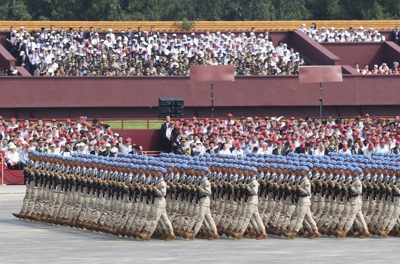 9月3日,紀(jì)念中國(guó)人民抗日戰(zhàn)爭(zhēng)暨世界反法西斯戰(zhàn)爭(zhēng)勝利80周年大會(huì)在北京隆重舉行。這是維和部隊(duì)方隊(duì)接受檢閱。
