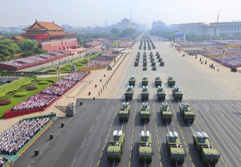 9月3日,紀(jì)念中國(guó)人民抗日戰(zhàn)爭(zhēng)暨世界反法西斯戰(zhàn)爭(zhēng)勝利80周年大會(huì)在北京隆重舉行。這是裝備方隊(duì)接受檢閱。