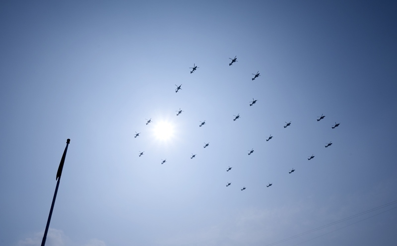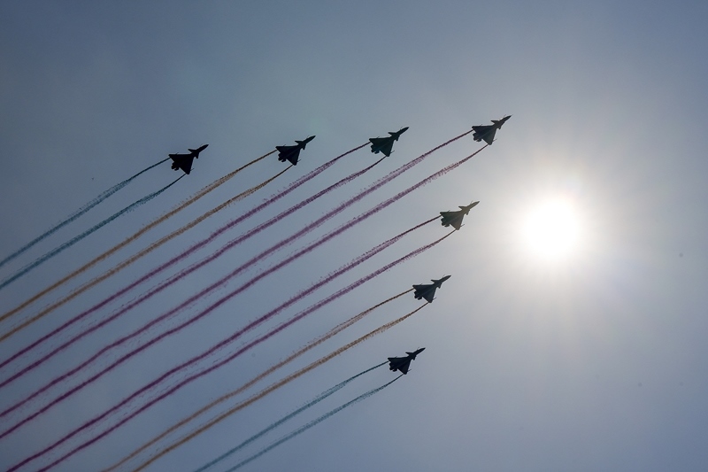 9月3日,紀(jì)念中國人民抗日戰(zhàn)爭暨世界反法西斯戰(zhàn)爭勝利80周年大會在北京隆重舉行。這是空中梯隊接受檢閱。