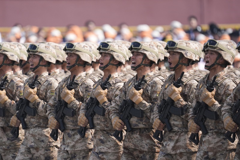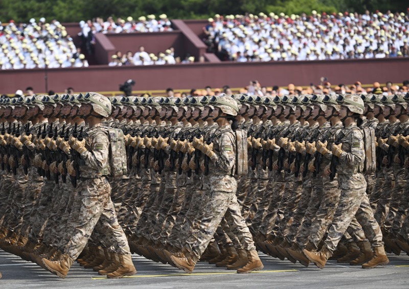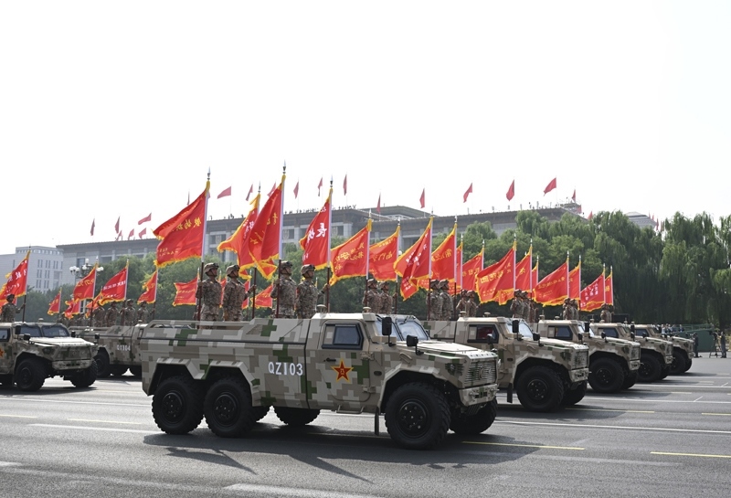 9月3日,紀(jì)念中國人民抗日戰(zhàn)爭暨世界反法西斯戰(zhàn)爭勝利80周年大會在北京隆重舉行。這是信息支援部隊方隊接受檢閱。