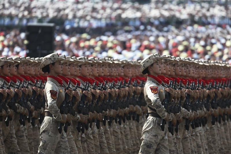 9月3日,紀(jì)念中國人民抗日戰(zhàn)爭暨世界反法西斯戰(zhàn)爭勝利80周年大會在北京隆重舉行。這是民兵方隊接受檢閱。