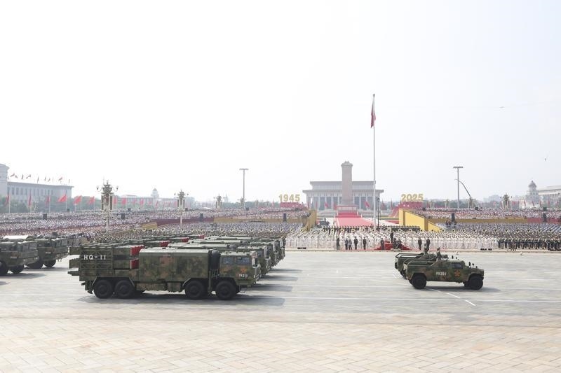 9月3日,紀念中國人民抗日戰(zhàn)爭暨世界反法西斯戰(zhàn)爭勝利80周年大會在北京隆重舉行。這是對空抗擊方隊接受檢閱。