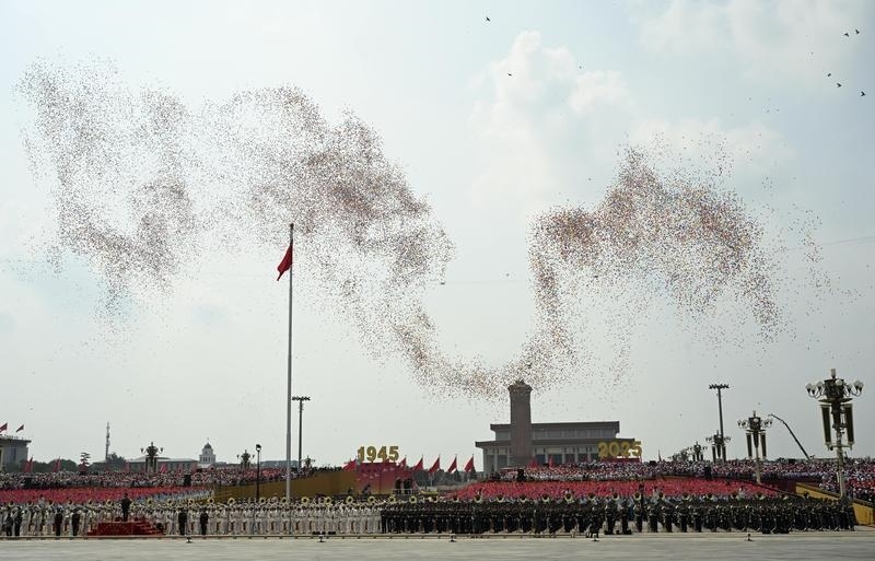 9月3日,紀念中國人民抗日戰(zhàn)爭暨世界反法西斯戰(zhàn)爭勝利80周年大會在北京隆重舉行。這是紀念大會現(xiàn)場放飛鴿子。
