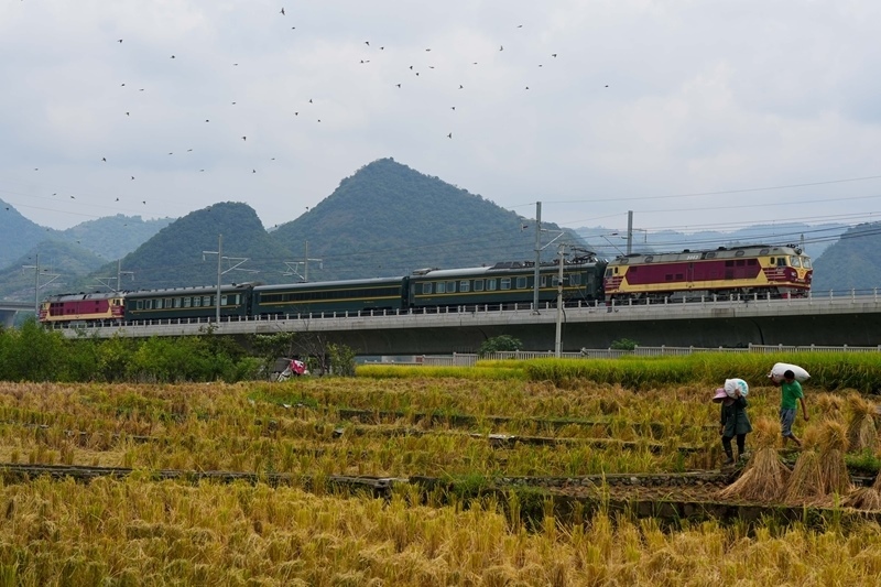 9月6日,在貴州省盤州市,盤興高鐵聯調聯試檢測列車從盤州站駛出。