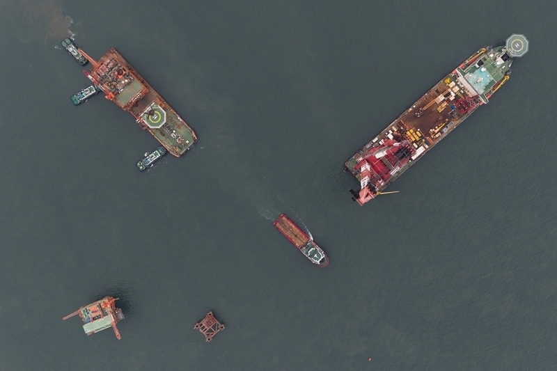 9月8日,墾利6-1油田10-1北區(qū)塊Ⅱ期開發(fā)項目油氣平臺在渤海海域完成海上安裝(無人機照片)。
