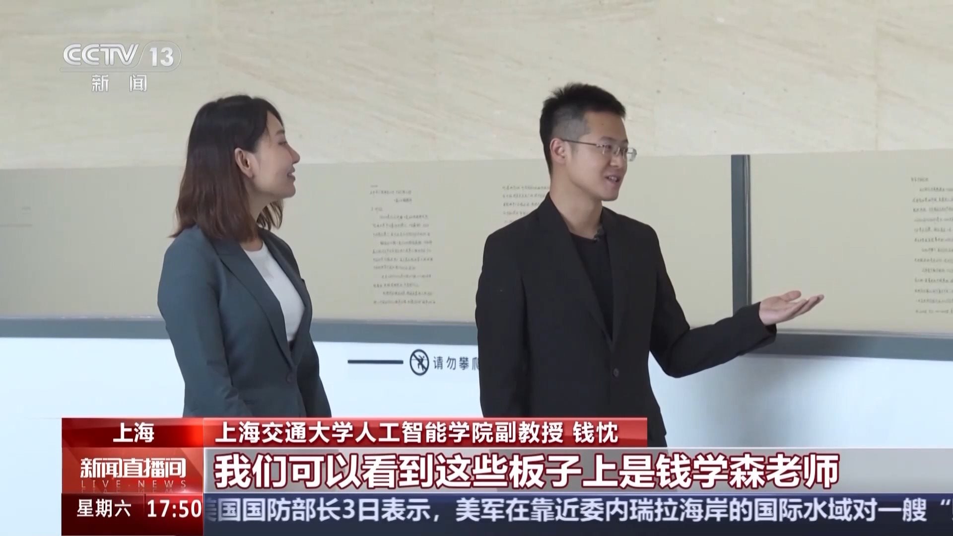 上海交通大學人工智能學院副教授 錢忱:這些板子上是錢學森老師在1992年到1993年留下的對各個行業(yè)的一些言論,以及一些未來的前瞻評價。我們可以看到他基本在自動駕駛、新能源、人工智能、海洋捕撈以及沙漠化治理等等領域,都有了非常前瞻甚至我們今天看起來都非常有遠見的一些想法。那么其實這些東西給了我們科研工作者一些啟示,甚至是一些警示,我們是否還在內卷于近一兩年的一些細枝末節(jié)的技術之上,我們能否跳脫當前的一個技術發(fā)展,來考慮未來短期、中期以及長期的一些技術思路,這個也是我們一直在思考的事情。