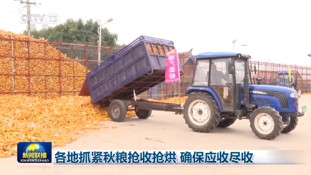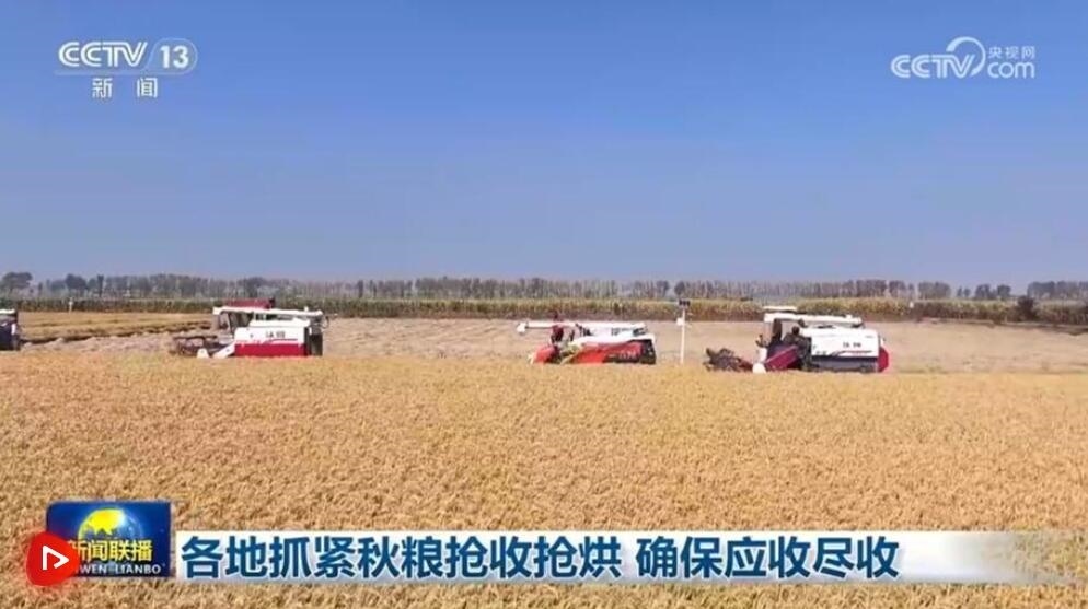 持續(xù)陰雨給華北、黃淮等地秋收帶來影響,各地千方百計做好搶收搶烘工作。山西秋糧收獲近五成,在太原清徐縣,當(dāng)?shù)亟M織300多臺水泵,進行不間斷排水,隨著水位下降,搶收加緊進行。山東累計調(diào)配玉米收獲機13.55萬臺,其中履帶式收獲機超萬臺,搶收玉米約3570萬畝。河北利用天氣轉(zhuǎn)晴的窗口期,抓緊秋糧搶收搶曬。江蘇調(diào)配3.5萬臺固定式烘干機、258臺移動式烘干機投入糧食搶烘。安徽秋糧收獲已過七成,農(nóng)業(yè)部門發(fā)布了753支農(nóng)機應(yīng)急作業(yè)隊和2114個烘干點信息,方便群眾聯(lián)系。同時,全省21萬臺聯(lián)合收割機全部投入作業(yè),2萬套烘干設(shè)施24小時開機烘干糧食,最大限度保障秋收。