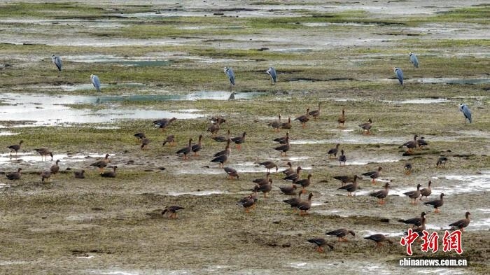 據(jù)江西鄱陽湖國家級自然保護區(qū)管理局湖口保護監(jiān)測站站長高新介紹,目前鄱陽湖湖口水域已發(fā)現(xiàn)數(shù)百只白額雁、小白額雁、豆雁等雁類候鳥的蹤跡,相比去年候鳥抵達(dá)時間推遲了近半個月。